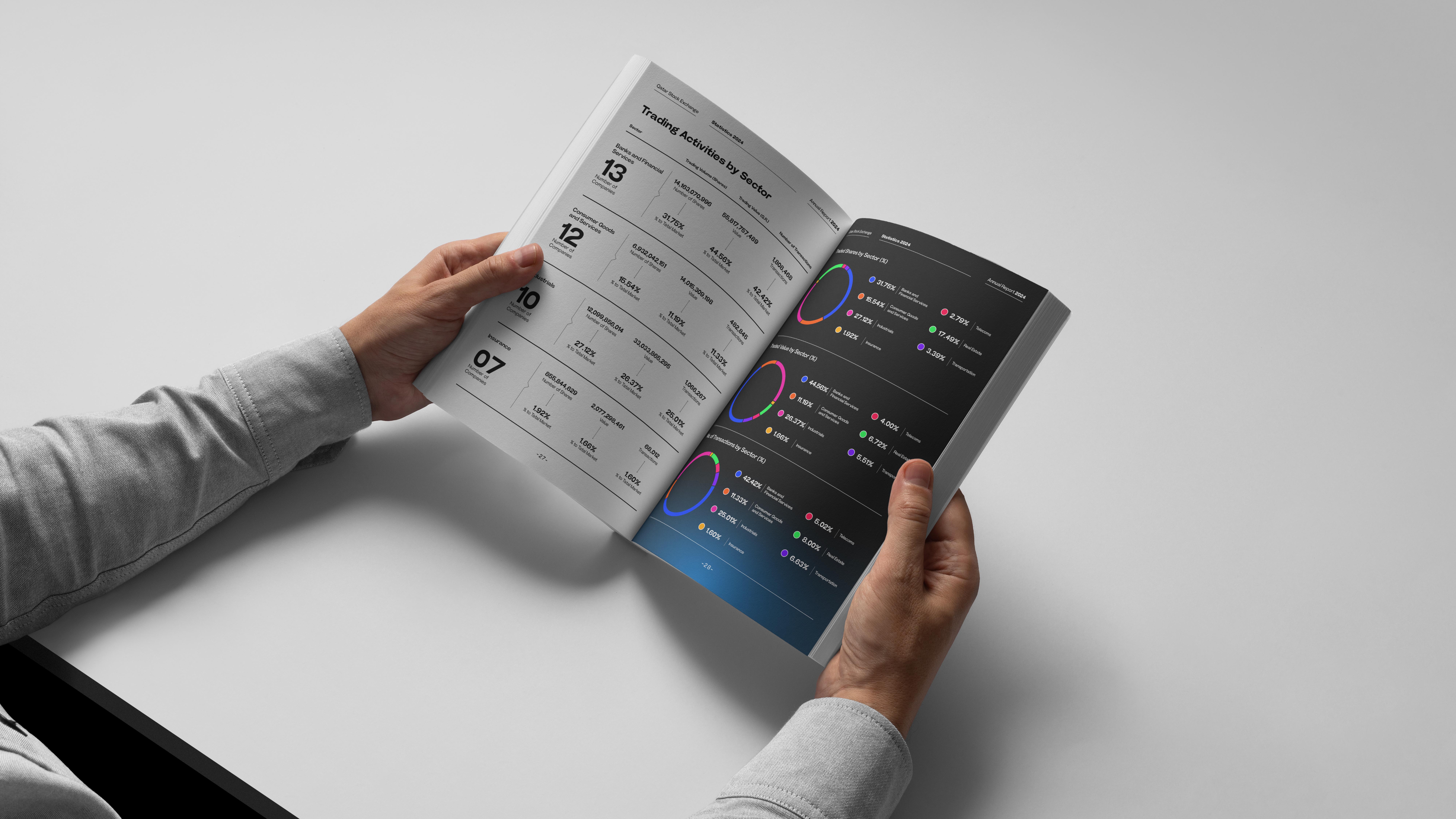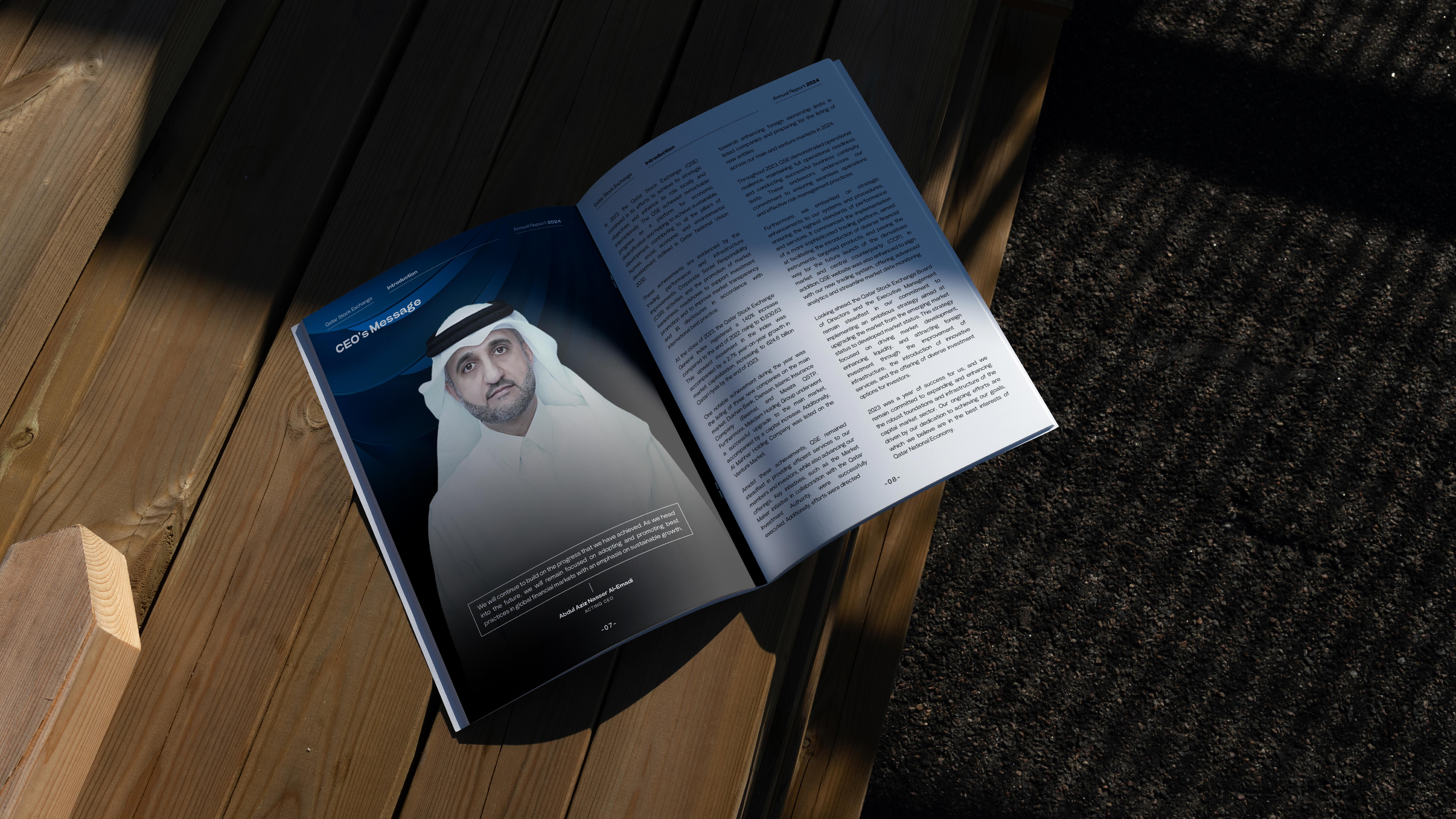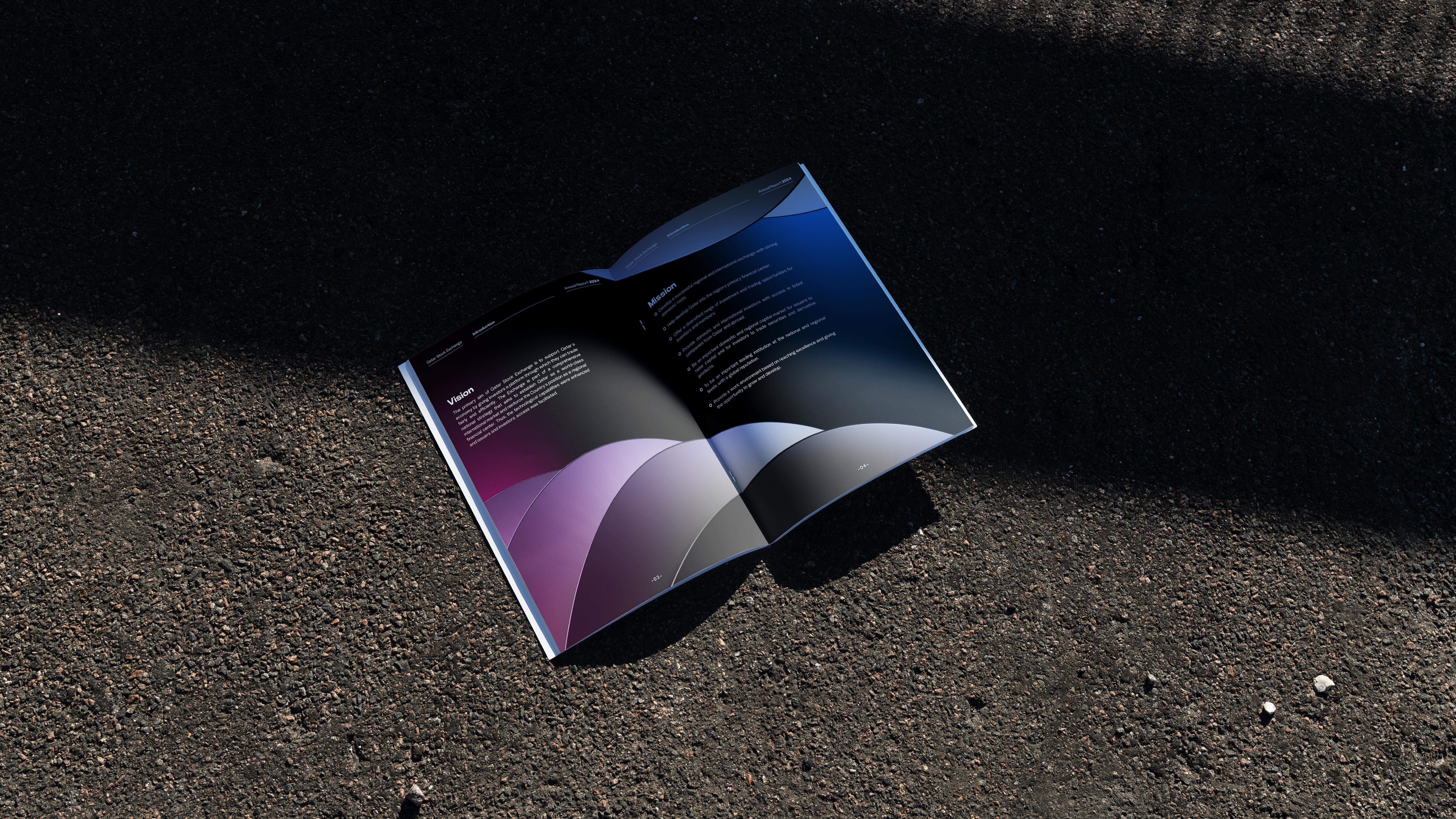 A creative proposal for QSE’s Annual Report, designed to present financial data and achievements with clarity and impact. The concept uses a refined grid system, bold typography, and a balance of visuals and infographics to modernize the publication while keeping it professional and accessible.